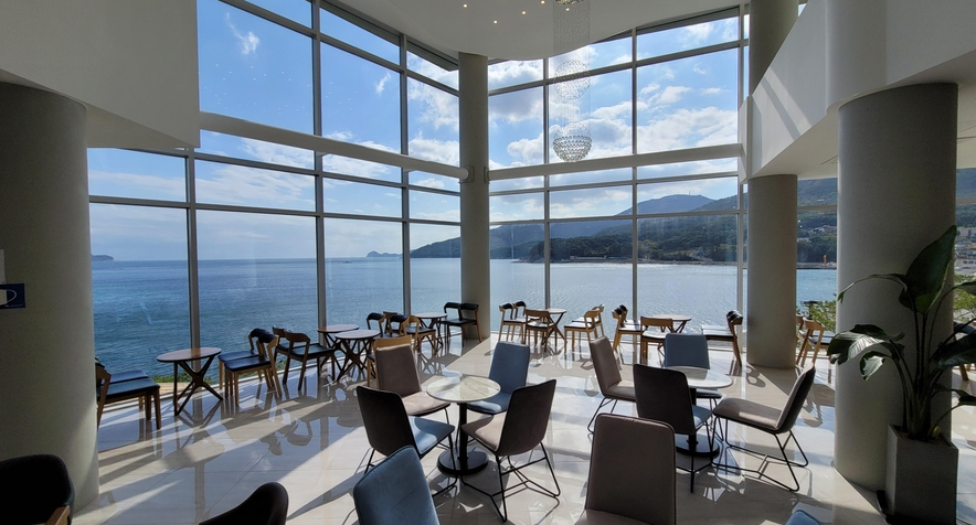 통유리창을 통해 어느 자리에서도 바다 조망 가능