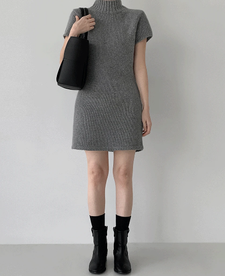 - 그레이 니트 원피스 + 블랙 타이츠 + 블랙 앵클부츠 + 버건디 숄더백