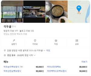 양양을 방문할 때마다 키가 첫 식사로 이곳을 찾는다는 것만으로도 이 식당의 맛과 품질을 충분히 증명하고 있습니다. 도시에서는 맛볼 수 없는 산속의 자연 식재료로 차려진 건강한 한 끼는 그 자체로 특별한 경험이 됩니다.