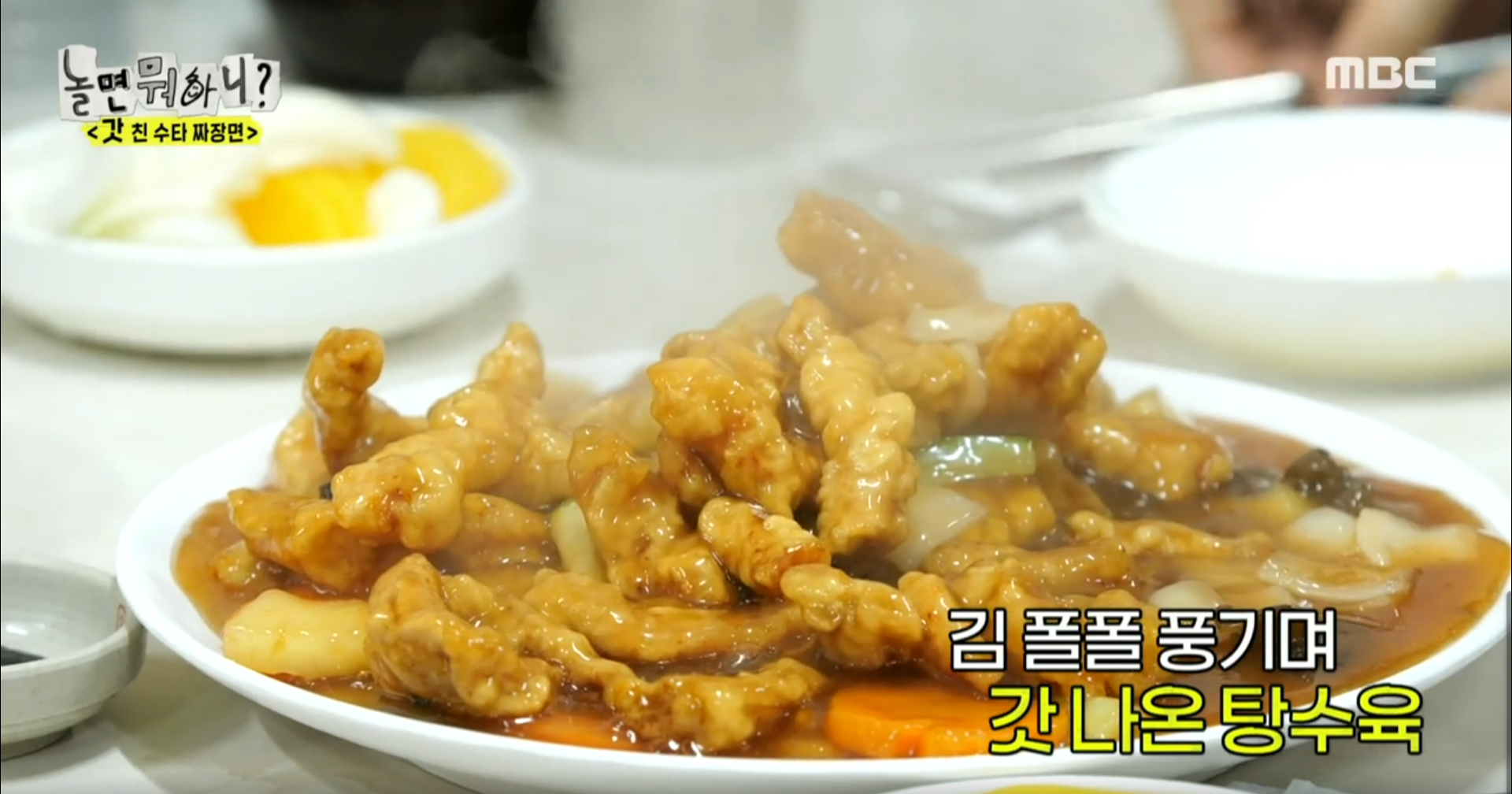 멤버들이 하영각 대표적인 메뉴 짜장면과 쟁반짜장 그리고 탕수육을 먹는데, 정말 맛있어 보였습니다. 특히나 전통적인 방식의 부먹으로 나오는 탕수육.... 먹고 싶드아...