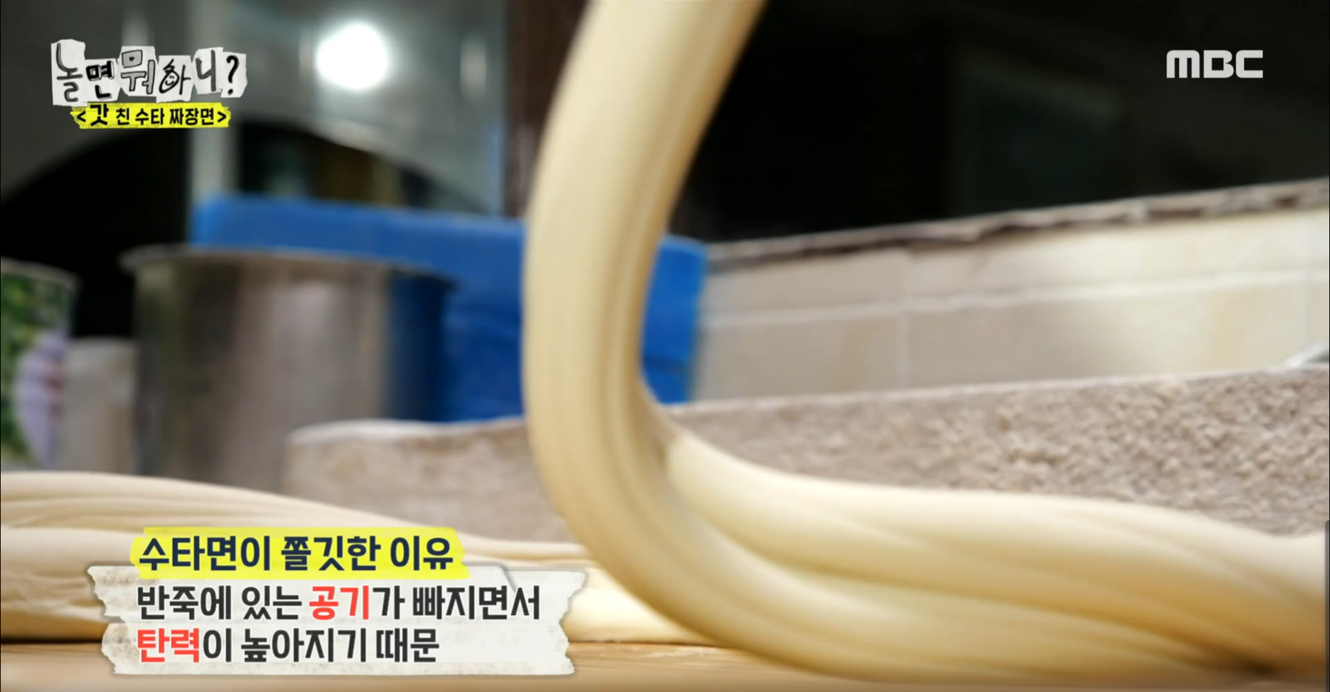 수타면이 쫄깃한 이유는 반죽에 있는 공기가 빠지면서 탄력이 높아지기 때문이라는군요.
