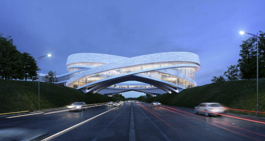 이 독특한 디자인은 단순히 미적 요소를 강조하는 데 그치지 않습니다. 상공형 구조 덕분에 양방향 차량들이 한 공간에서 서비스를 이용할 수 있어 효율성이 높아졌습니다. 또한, 건물 내부는 넓고 개방감 있는 설계를 통해 방문객들에게 쾌적함을 제공합니다. 내부에는 대형 유리창과 자연 채광을 활용해 밝고 현대적인 분위기를 조성했으며, 외부에서는 주변 자연 경관을 한눈에 감상할 수 있습니다.