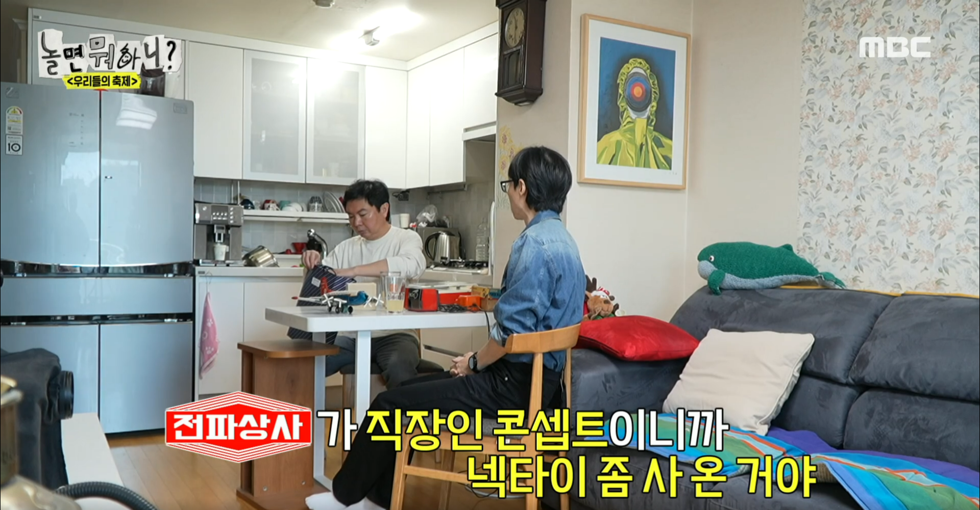 오늘 놀면뭐하니는 유재석과 전파상사 멤버들이 임원희 집에 가서 우리들의 축제 참가 확정을 확인하는 내용이 메인이었습니다. 임원희와 유재석의 케미를 보는 것도 재미가 있지만 임원희와 전파상사 사이에서의 티키타카도 재미가 있고, 그 사이에 유재석이 양념을 치는 장면들이 더욱 재미를 배가 시키는 역할을 했습니다.