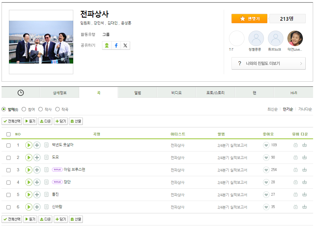 축제에 나가는 멤버이니, 그들의 주요 노래에 대해서도 알아봐야겠죠? 멜론 사이트를 참고했습니다. 아직은 낯선데요. 제가 좋아하는 락발라드쪽이 아니라서.... 대중적인 노래가 하나 이상 꼭 등장하길 기도해봅니다.