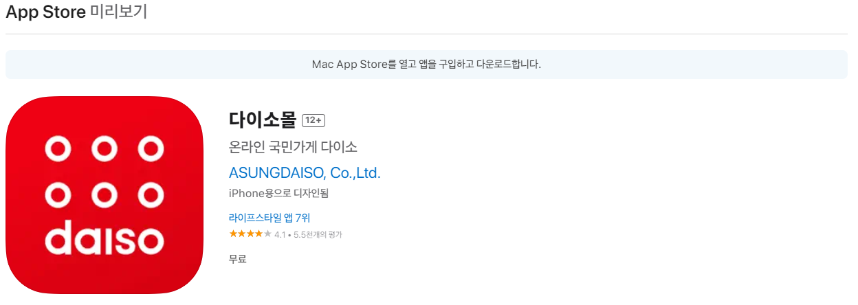 - 다이소 모바일 앱에서 제품명을 검색합니다.