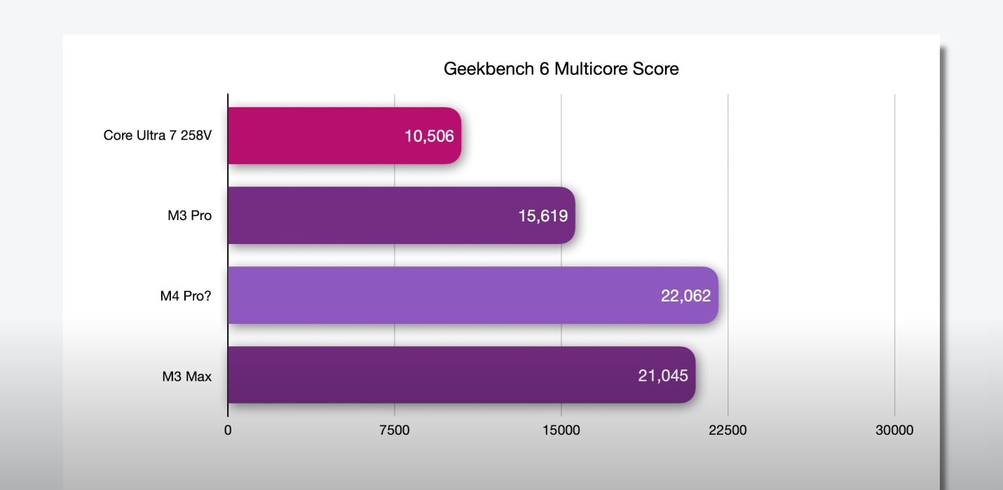 CPU 성능에서도 M4 칩은 이전 세대인 M3에 비해 약 26.7% 향상된 싱글코어 성능과 30.6% 향상된 멀티코어 성능을 보여주었습니다. 이는 애플이 발표한 “M3 대비 최대 25% 더 빠른 CPU 성능” 주장과 일치하는 결과입니다.