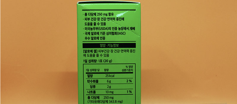 이외에도 장 건강 개선, 피부 건강 증진 등 다양한 효능을 가지고 있어 건강 관리에 매우 유용한 성분입니다. 이러한 이유로 최근에는 알로에겔을 함유한 건강기능식품이 많은 사람들에게 인기를 끌고 있습니다.