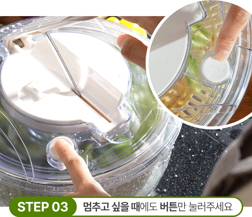 - 탈수 기능: 세척한 야채의 물기를 빠르고 효과적으로 제거할 수 있어요. 손잡이를 돌리면 원심력으로 물기가 제거되는데, 이 과정이 매우 빠르고 효율적이랍니다.