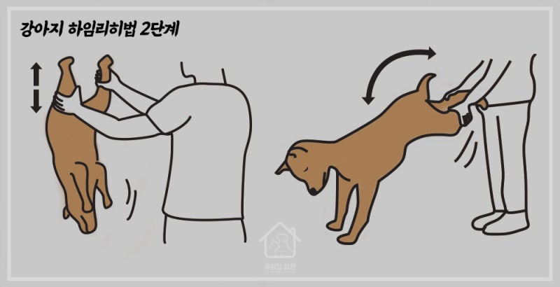 - 강아지 뒤에서 배를 감싸 안습니다.