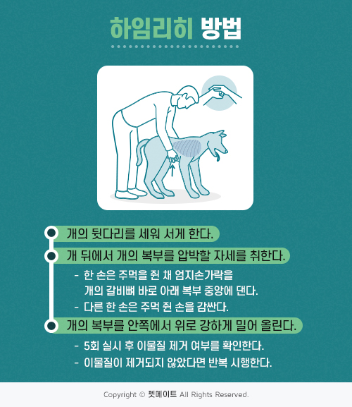 - 이물질이 제거되지 않으면 즉시 동물병원으로 이동해야 합니다.