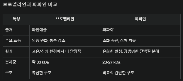 - 기원: 브로멜라인은 파인애플에서, 파파인은 파파야에서 추출됩니다. 각각의 과일에서 자연적으로 생성되며, 고유한 특성을 가지고 있습니다.