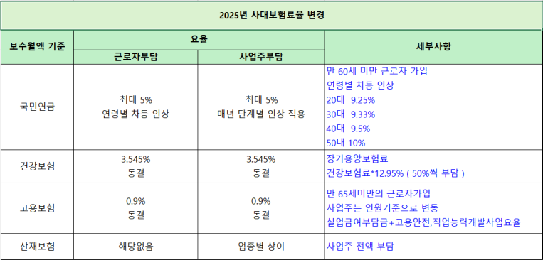 25년 사대보험율 변경