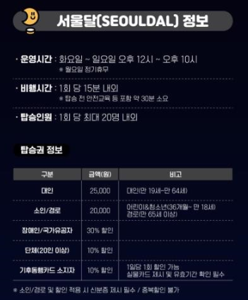 다음은 많은 분들이 놓치기 쉬운 할인 정책입니다. 정가를 모두 내기엔 조금 부담스러울 수 있지만, 다양한 할인 혜택을 활용하면 훨씬 합리적인 가격에 서울달을 즐길 수 있습니다.