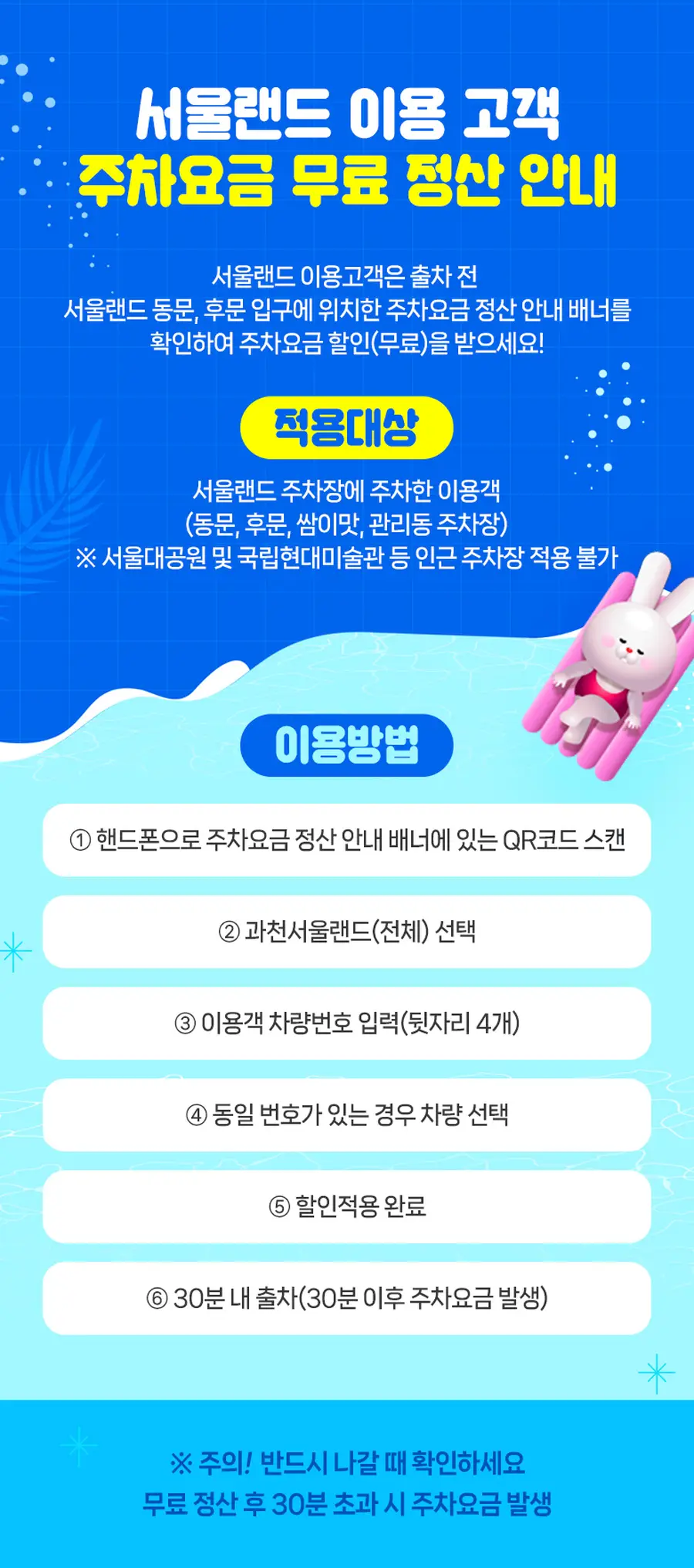 - 입장부터 폐장 시간까지 무제한 이용 가능