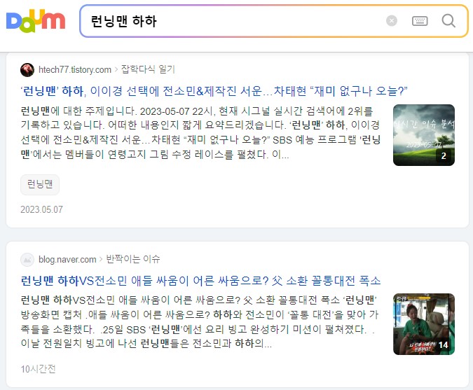 근데 어제 '런닝맨'에서의 하하 행동과 언행은 딸을 가진 아빠라면 가져야 할(?) 모습을 넘은 것 같습니다. 철없는 40대 가장이라고 해도 좀 아닌 것 같아요. 그렇다고 자신은 자칭 '꼰대'라고 불리우면 싫어하지 않나요? 전소민을 키우기 위해, 관심 가지게 만들기 위한 포장도 어울리지 않을 것 같아요.