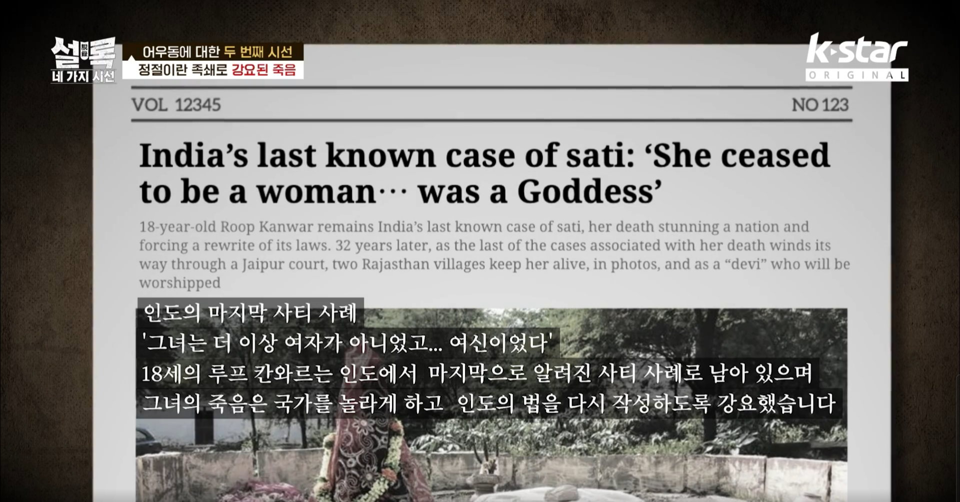 - 이는 여성의 인권과 자유를 침해하는 문제가 있었지만, 동시에 여성의 헌신과 순종을 강조하는 인도 문화의 일면을 보여줍니다.