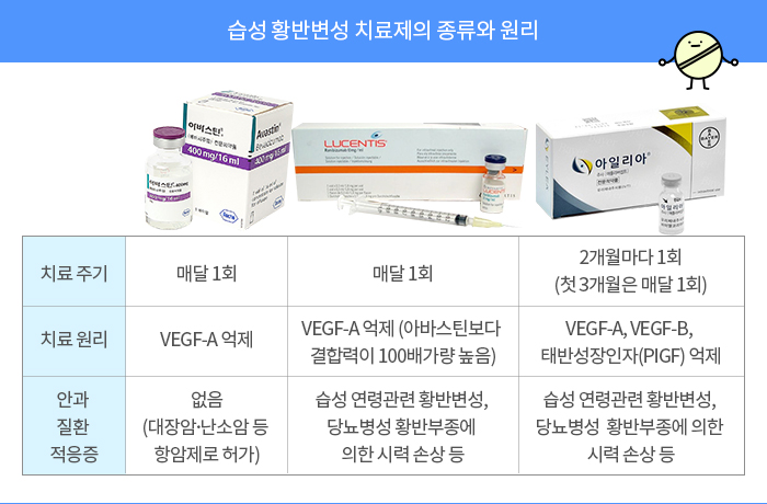 대상: 습성 연령관련황반변성, 당뇨병성 황반부종, 분지망막정맥폐쇄성 황반부종, 근시성 맥락막 신생혈관 환자