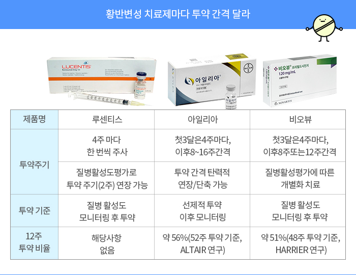 - As-needed: 재발 시에만 추가 주사하는 방식