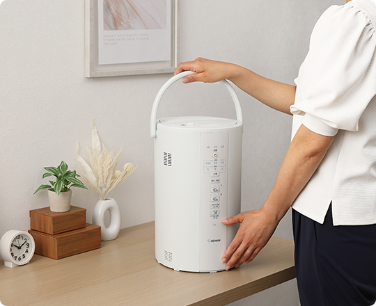 - 스팀 냉각 구조: 100℃로 끓인 물을 약 65℃까지 냉각하여 배출합니다. 이를 통해 화상의 위험을 크게 줄이면서도 효과적인 가습이 가능합니다.