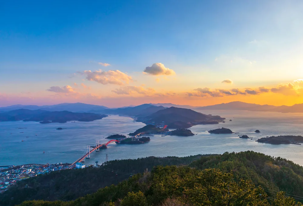 먼저 달아공원입니다. 산양일주도로 중간에 위치한 작은 공원으로, 일몰 명소로도 유명합니다. 공원 전망대에서는 한려해상국립공원의 아름다운 섬들과 바다가 한눈에 들어와, 환상적인 풍경을 담을 수 있습니다.