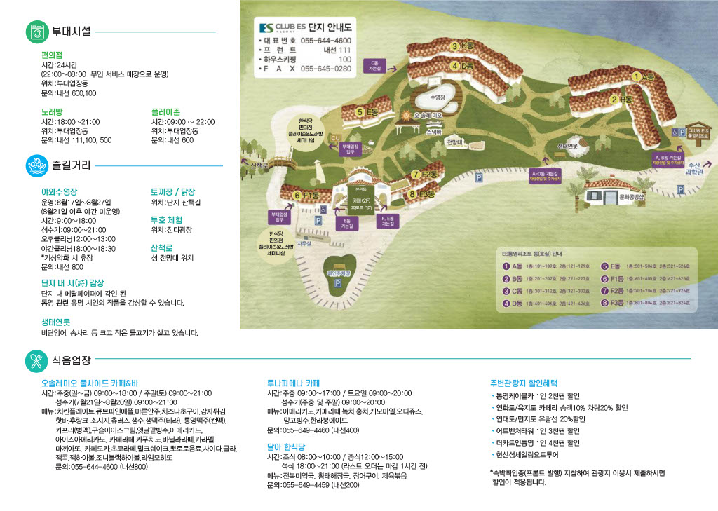 특징: 한려해상국립공원 내 위치한 휴양 리조트. 푸른 언덕 위에 자리잡아 아름다운 경관 제공