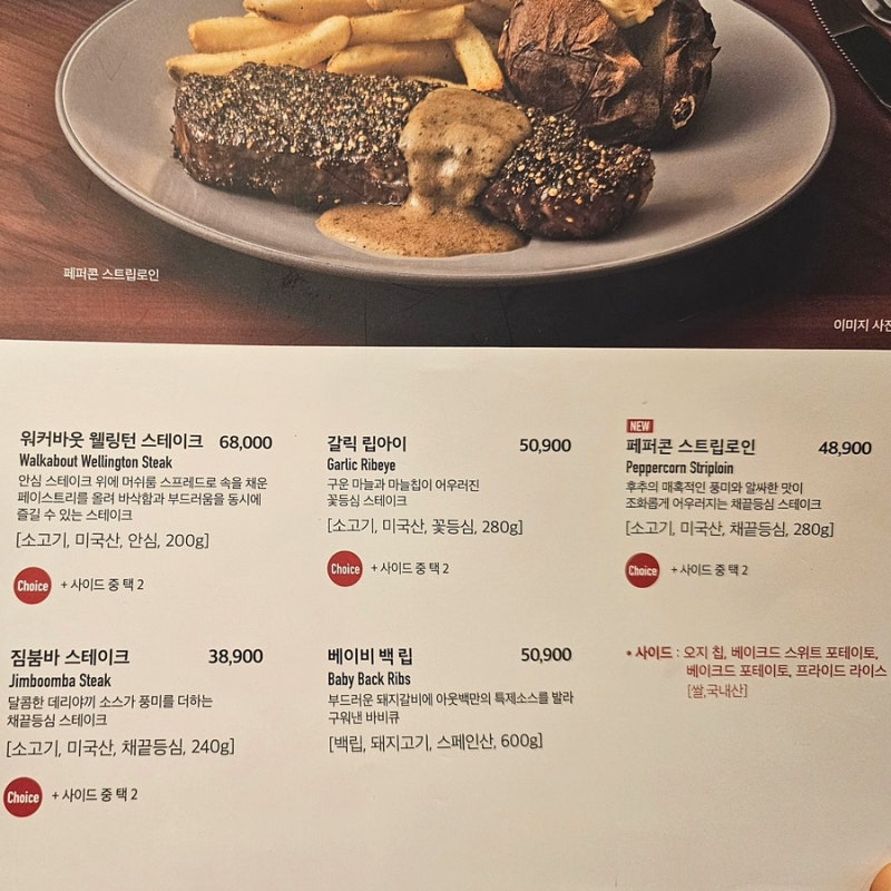 4. 사이드 메뉴 선택: 스테이크 주문 시 제공되는 사이드 메뉴 2가지를 선택할 수 있습니다. 개인의 취향에 맞게 골라보세요.
