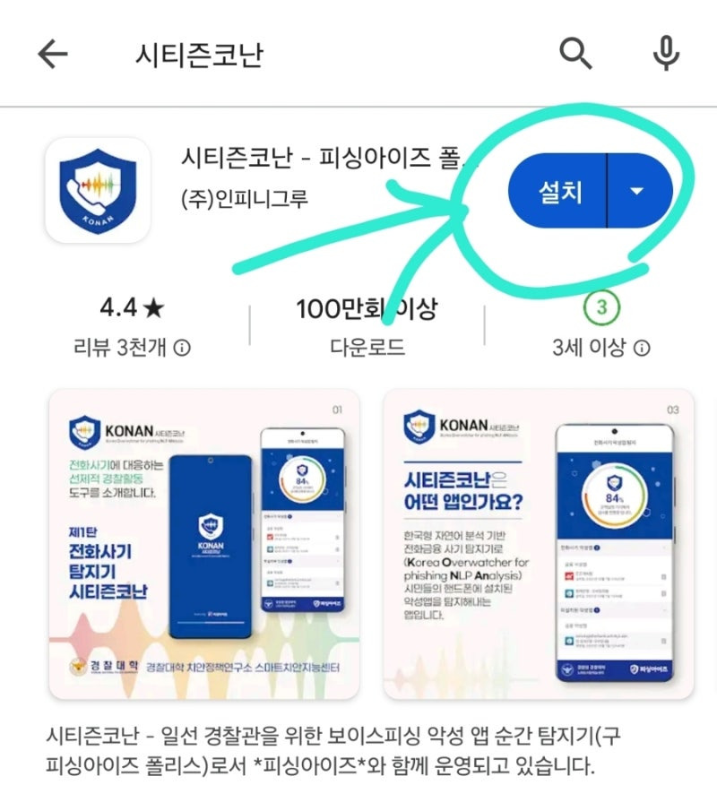 하지만 ‘피싱아이즈’는 ‘시티즌코난’에 비해 기능이 제한적이라는 한계점을 가지고 있습니다. ‘시티즌코난’은 악성 앱 설치 자체를 탐지하고 차단하는 강력한 기능을 제공하지만, ‘피싱아이즈’는 악성 앱 설치를 직접적으로 막을 수 없으며, 주로 스미싱 문자나 보이스피싱 전화에 대한 경고를 제공하는 데 집중합니다. 또한, 일부 기능은 특정 카드사(신한카드, 국민카드) 사용자에게만 제공되거나, 유료로 제공된다는 점도 아쉬운 부분입니다.
