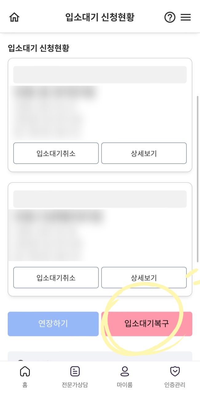 - 취소 후 3개월 이내에는 '입소대기복구' 기능으로 복구가 가능합니다. 하지만 3개월이 지나면 복구가 불가능하므로 신중히 결정해야 합니다.