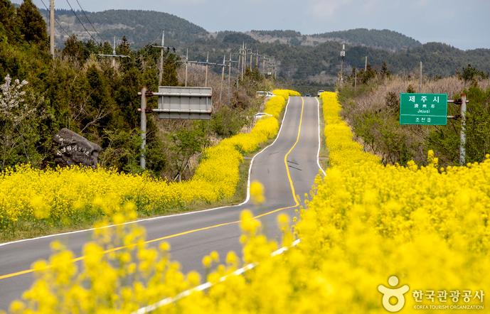 특징 : 약 10km 구간에 걸쳐 도로 양쪽으로 유채꽃과 벚꽃이 만발합니다. '한국의 아름다운 길 100선’에 선정될 만큼 아름다운 경관을 자랑합니다.