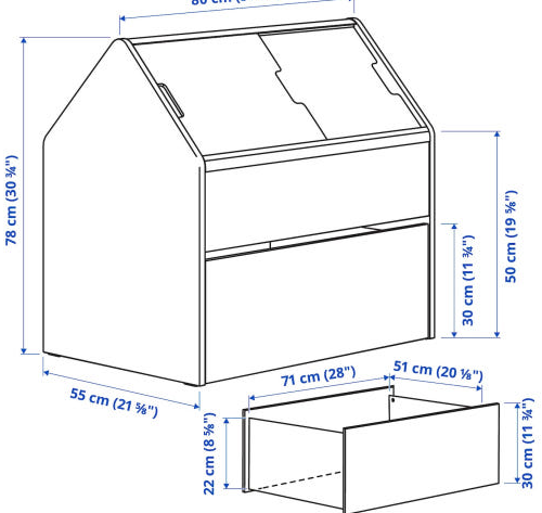 대부분의 어린이 수납 가구가 단순한 박스형 디자인이나 캐릭터 그림이 그려진 형태라면, 비트비에른은 그 자체로 하나의 건축물 형태를 갖추고 있습니다. 이러한 3차원적 디자인은 아이의 상상력을 자극하고 놀이의 일부가 될 수 있다는 점에서 큰 차별점을 가집니다. 또한 트렌드에 덜 좌우되는 클래식한 집 모양 디자인은 오랜 시간이 지나도 질리지 않는 장점이 있습니다.