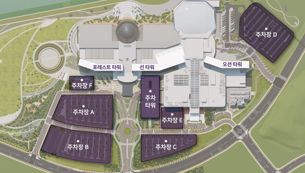 주차장 위치: 지하 주차장 및 옥외 주차장 / 주차 가능 대수: 총 3,000대 이상