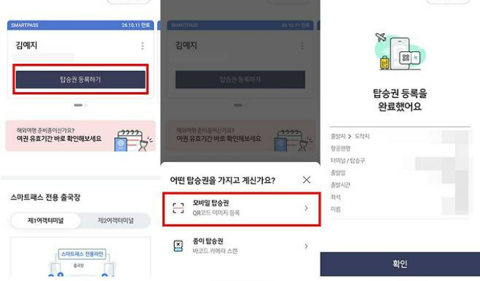 출국 당일, 항공사 모바일 체크인 후 발급받은 탑승권의 QR코드를 앱에 등록합니다. 탑승권은 출국할 때마다 새로 등록해야 합니다.
