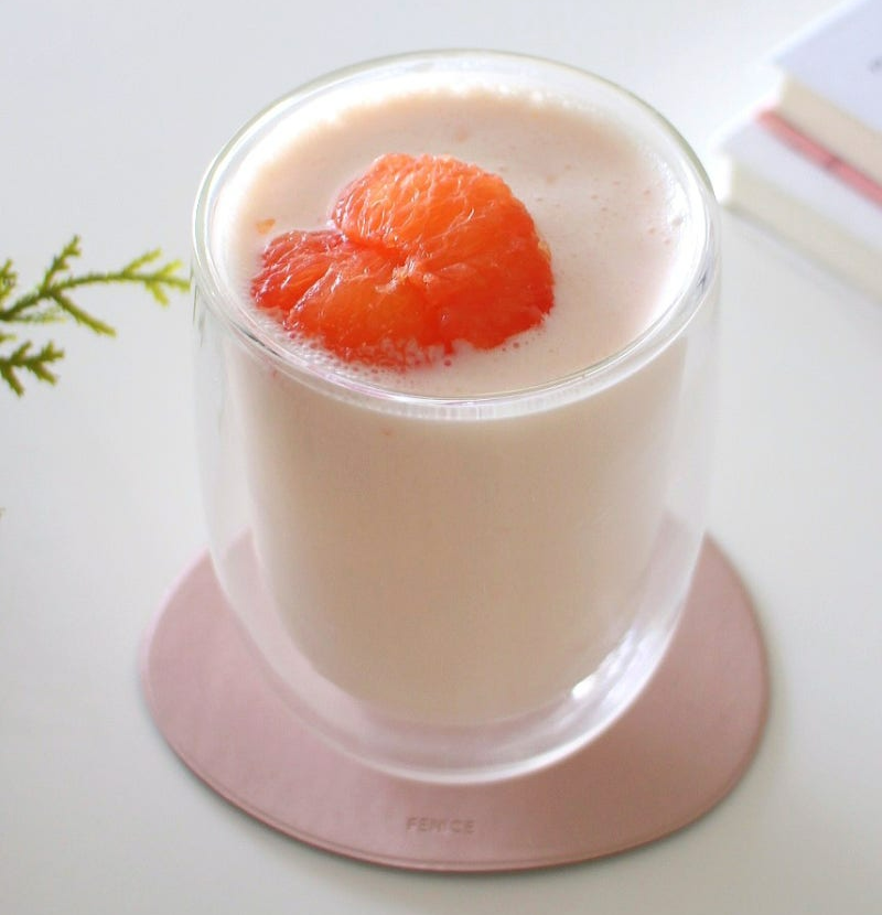 - 블렌더에 자몽 과육(또는 자몽 시럽), 요거트, 우유를 넣습니다.