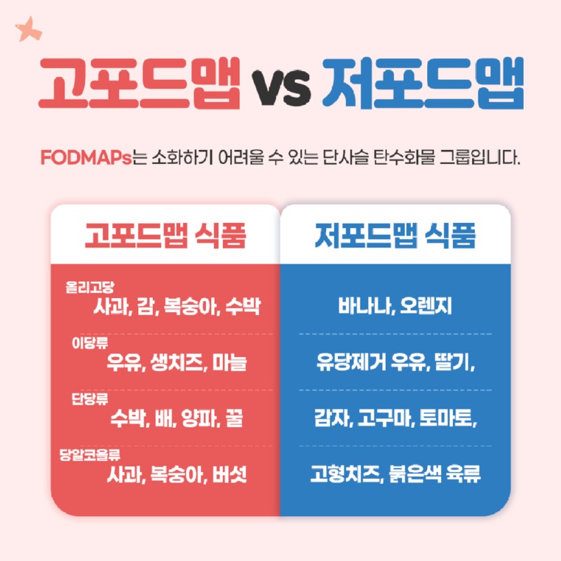 따라서, 장이 예민한 사람들은 포드맵이 적은 음식을 먹는 것이 좋습니다.