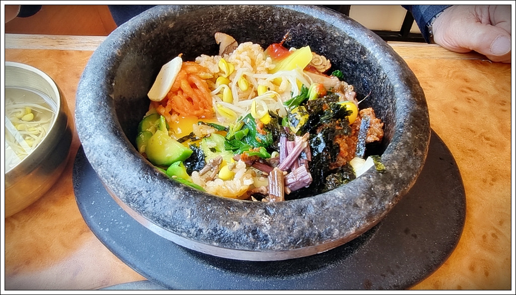 이사님은 전주비빔밥, 저는 용감하게 육회비빔밥을 시켜서 먹었습니다.