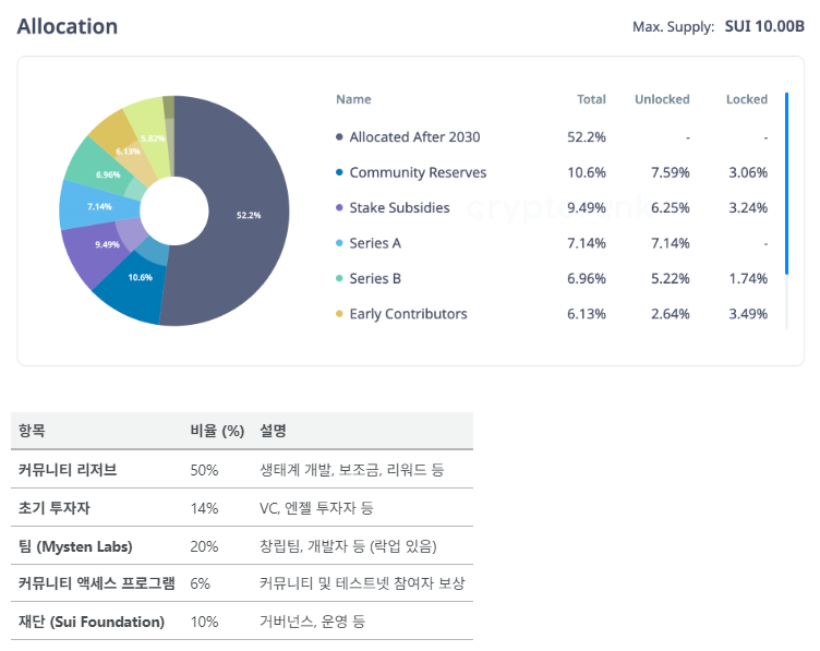 투자 포인트: 수이는 '제2의 솔라나'가 될 가장 유력한 후보 중 하나로 꼽힙니다. 아직 솔라나만큼 생태계가 성숙하지는 않았지만, 뛰어난 기술력과 페이스북이라는 든든한 배경, 그리고 사용자 친화적인 접근 방식을 무기로 빠르게 격차를 좁혀나가고 있습니다. 차세대 플랫폼 코인을 남들보다 한발 앞서 선점하고 싶은 투자자라면 반드시 주목해야 할 프로젝트입니다. 다만, 매월 대규모의 락업 해제 물량이 예정되어 있어, 단기적인 가격 변동성이 클 수 있다는 점은 반드시 유의해야 합니다.