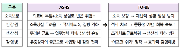 생산성 손실 방지: 아픈 근로자가 무리하게 근로할 때 발생되는 생산성 손실을 예방합니다.