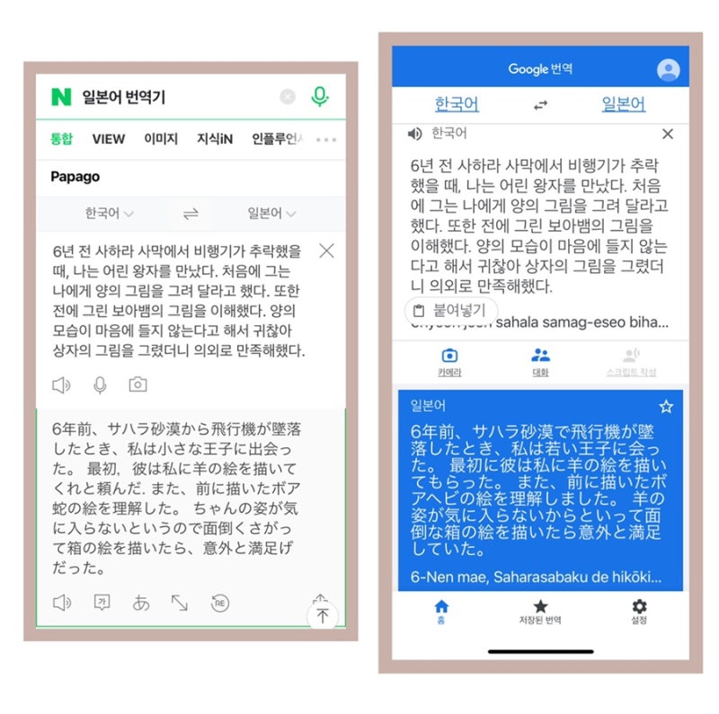 하지만 일본어-한국어 번역의 정확도는 파파고에 비해 다소 떨어지는 편입니다.