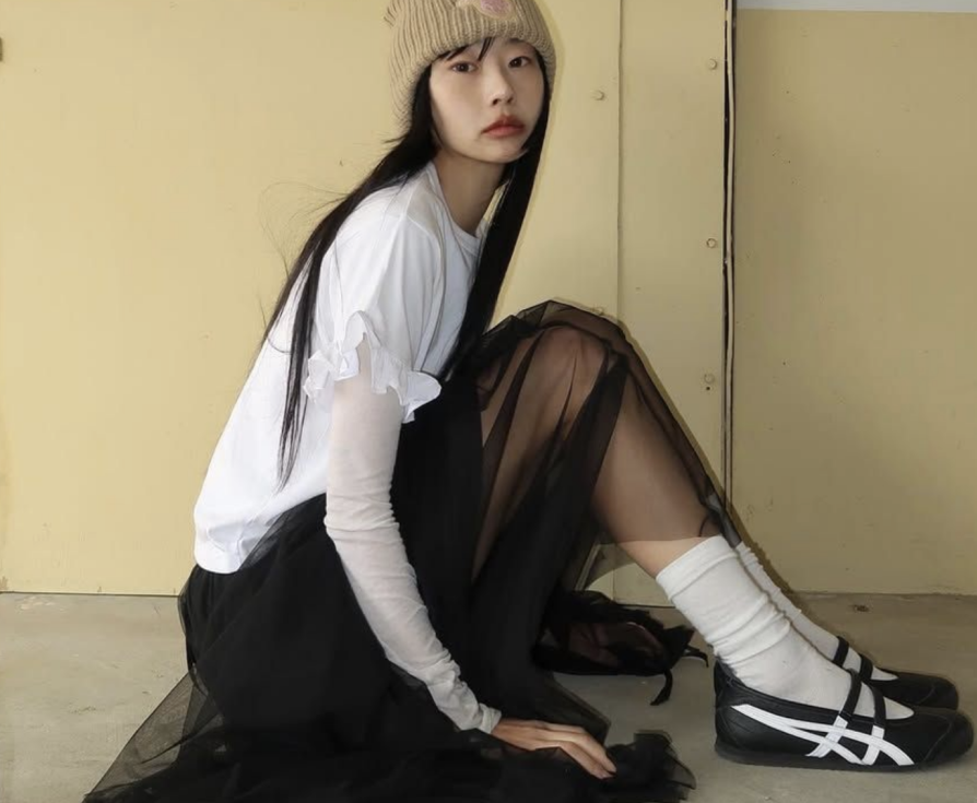 - 페미닌룩의 반전 매력, 드레스/스커트 + 스니커즈: 하늘하늘한 롱 드레스나 플리츠 스커트에 스니커즈를 매치하는 것은 이미 많은 패피들이 사랑하는 스타일링이죠. 케즈 메리제인이나 캔버스 스니커즈는 사랑스러운 느낌을 더해주고, 청키한 어글리 슈즈나 테크 스니커즈는 힙한 반전 매력을 선사합니다. 이때 양말을 활용하면 더욱 다채로운 분위기를 연출할 수 있어요.