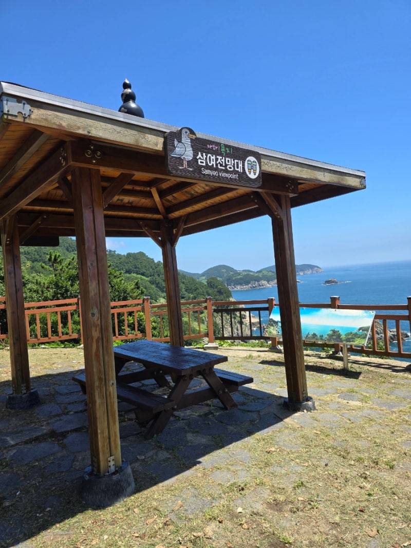 먼저 삼여전망대 입니다. 이곳에서는 아름다운 욕지도의 해안선과 바다를 한눈에 감상할 수 있습니다. 일몰 무렵에는 환상적인 풍경을 볼 수 있어 많은 사람들이 찾는 곳입니다.