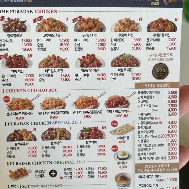 푸라닭치킨은 다양한 메뉴를 제공하고 있지만, 그 중에서도 특히 인기 있는 메뉴 TOP 3를 소개해드리겠습니다.