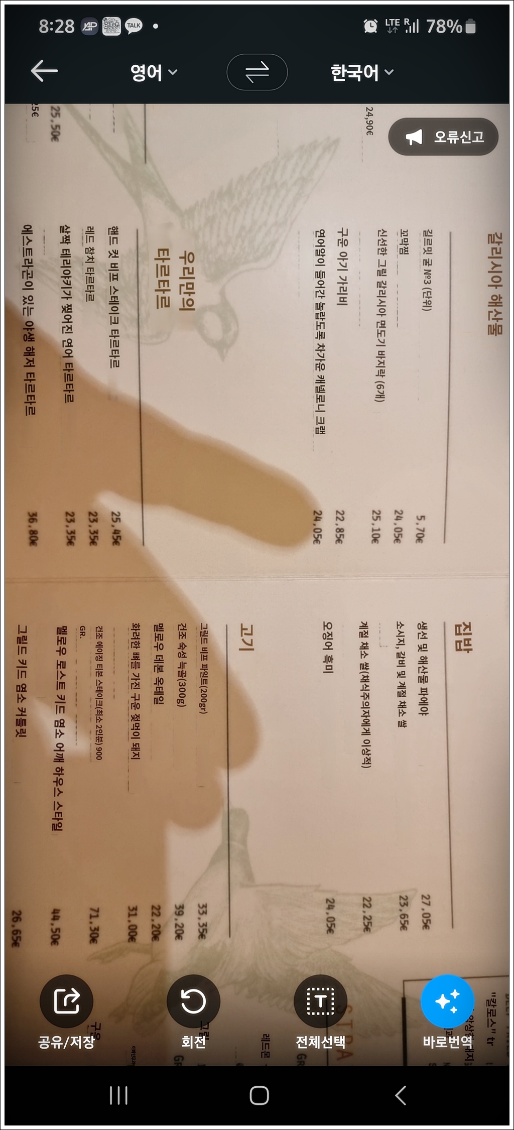 메뉴가 나왔습니다. 역시나.. 스캔 & 번역