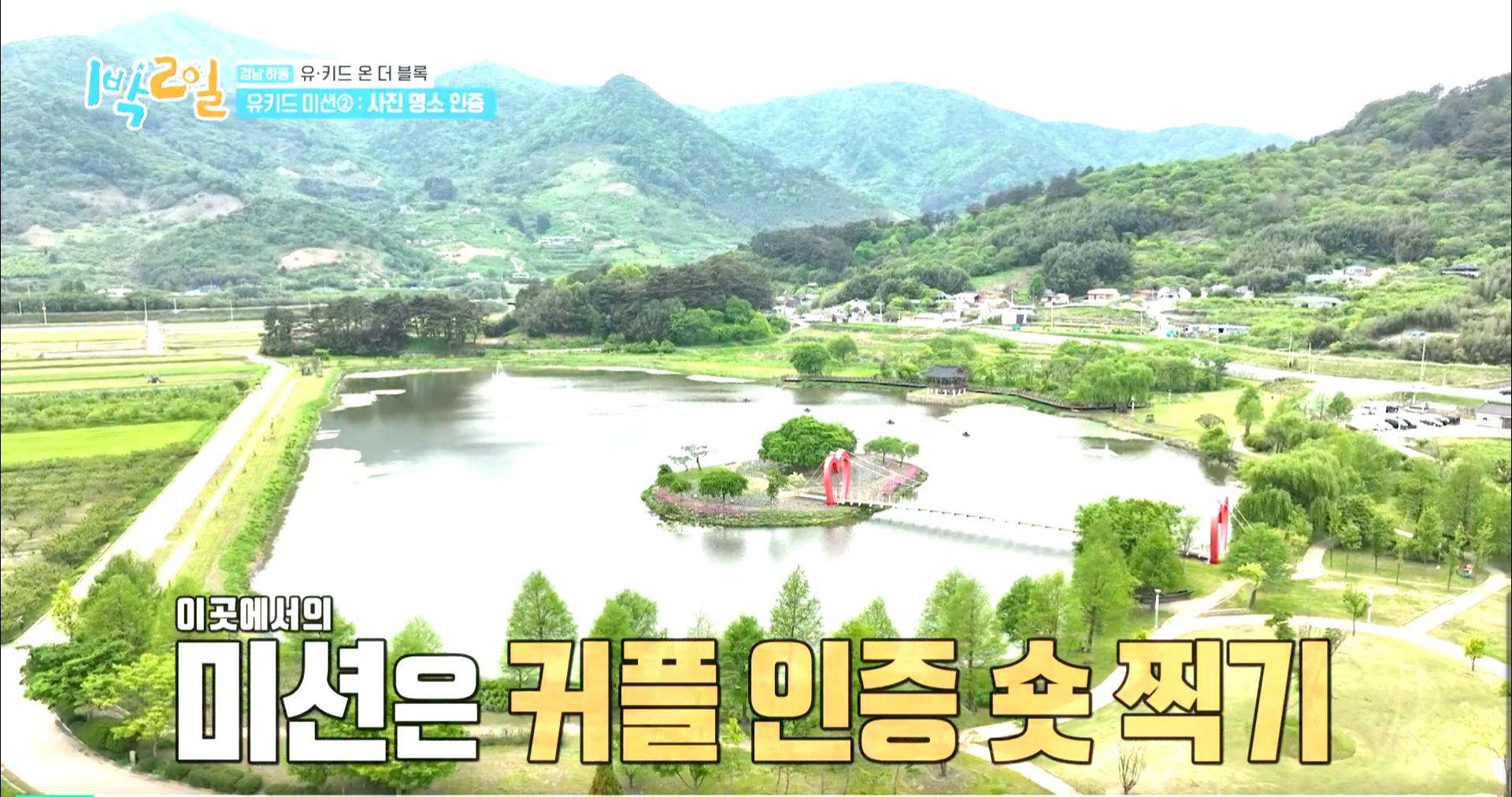 유키드팀이 양탄국 커피문화원에서 미션을 완료하고 다음으로 도착한 곳은 동정호에서의 커플 인증 샷 찍기였습니다. 여기도 자그마한 저수지 혹은 호수 같던데. 사진 찍을 곳들이 많아 보이더라구요. 커플이나 가족끼리 가면 참 좋을 곳 같았습니다.