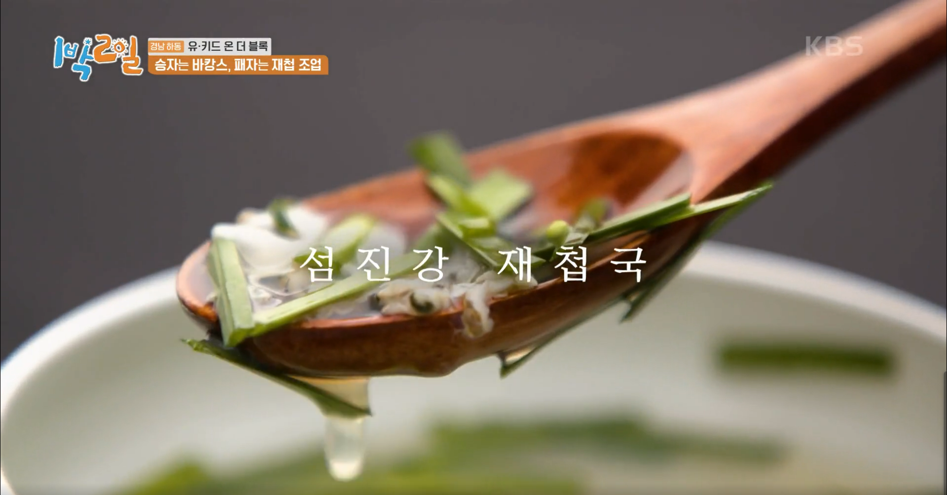 점심은 섬진강에서, 패자는 재첩 조업을 하고, 승자는 배 위에서 맛있는 식사를 먹는 것이었습니다.
