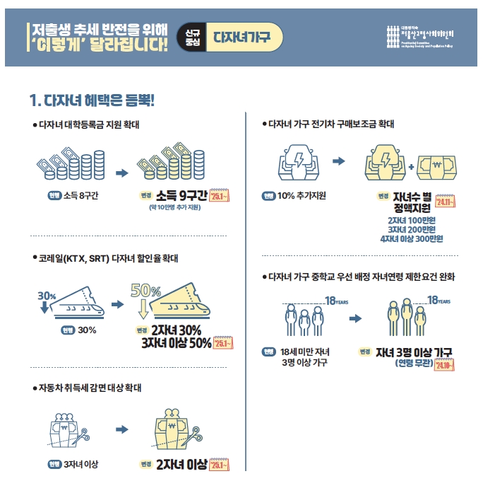- 고속도로 통행료 할인: 다자녀 가구 대상 최대 50% 할인