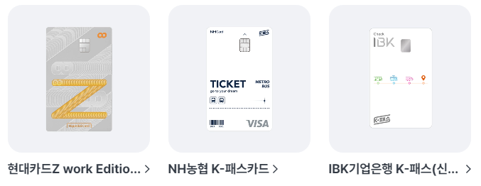 • 신한, 국민, 우리 등 10여 개 카드사에서 K-패스 카드를 출시했습니다. 위 비교표를 참고해 마음에 드는 카드를 골라 해당 카드사 앱/홈페이지에서 신청하세요.