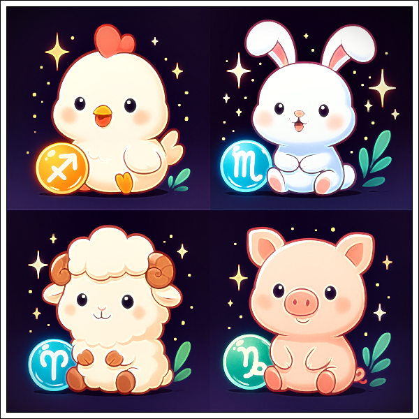 분석: 네 띠 모두 직장과 사업에서 긍정적인 흐름을 보입니다. 닭띠는 장기 프로젝트에서, 토끼띠는 대인관계에서, 양띠는 리더십에서, 돼지띠는 적극적인 도전에서 성과가 두드러집니다.