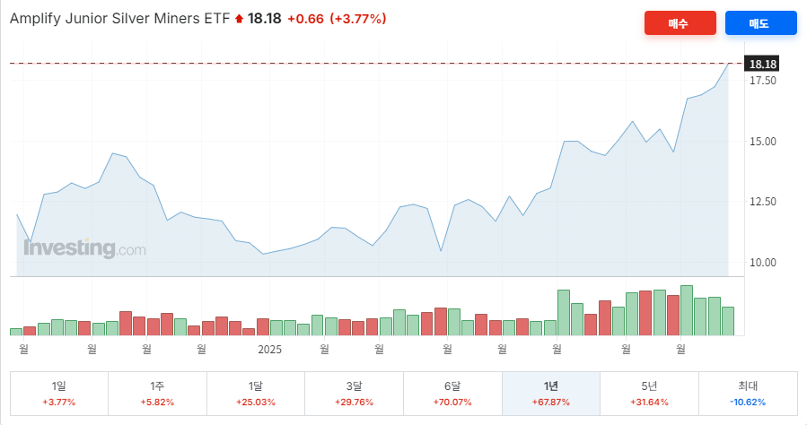 그런데 2025년 8월, 조금은 특별한 커버드콜 ETF가 시장에 등장했습니다. 바로 Amplify SILJ Covered Call ETF, 티커 SLJY입니다. 이 ETF는 단순히 주가지수를 추종하는 것을 넘어, '은(Silver)' 그중에서도 성장 잠재력이 큰 '주니어 은 채굴 기업'에 투자하며 커버드콜 전략을 구사합니다.