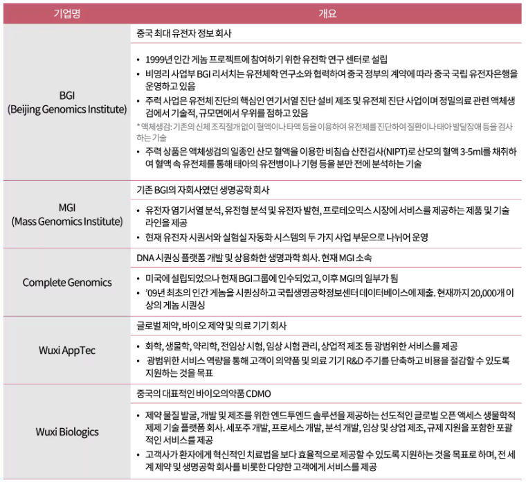 이 법안의 핵심은 간단합니다. "미국인의 유전 정보 보호와 국가 안보를 위해, 중국의 특정 바이오 기업과 거래하지 않겠다" 는 선언입니다. 법안에 명시된 '우려 기업' 리스트에는 전 세계 위탁개발생산(CDMO) 시장을 주름잡는 우시 앱텍(WuXi AppTec) 과 우시 바이오로직스(WuXi Biologics) 등이 포함되어 있습니다.
