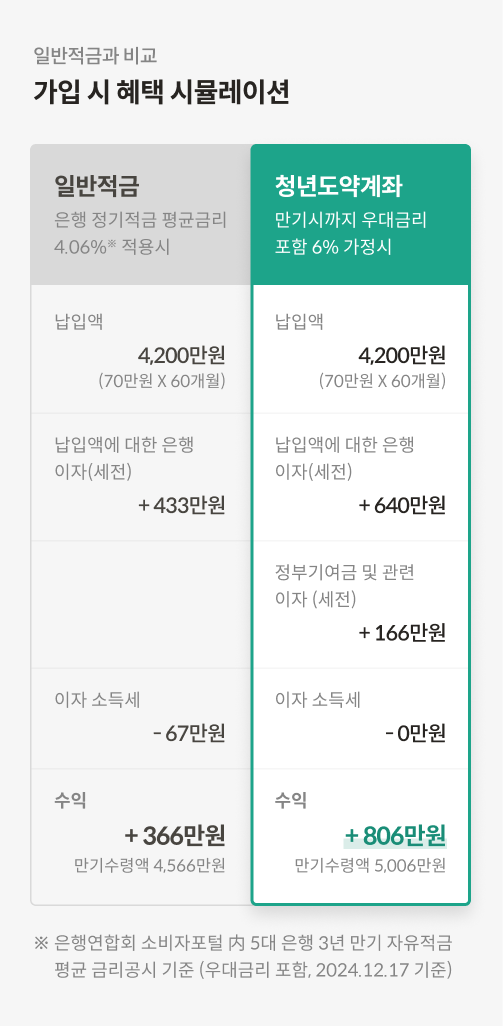 특히 주목할 만한 점은 연간 납입한도가 840만원이라는 것입니다. 이는 매월 균등하게 저축하지 않아도 된다는 의미로, 여유자금이 생길 때마다 추가로 납입할 수 있는 기회를 제공합니다. 예를 들어, 보너스를 받았을 때나 예상치 못한 수입이 생겼을 때 더 많이 저축할 수 있어 자금 관리의 유연성을 높여줍니다.